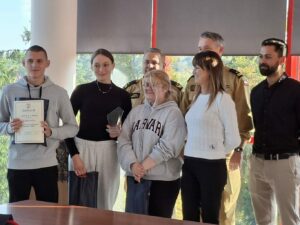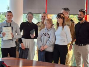 z zakresu pierwszej pomocy przedmedycznej. Ważnym aspektem olimpiady było również kształtowanie postaw prozdrowotnych i prospołecznych oraz promowanie odpowiedzialności za życie i zdrowie innych. Rywalizacja zakończyła się dużym sukcesem uczniów naszej szkoły. Drużyna w składzie: Alicja Chylewska , Hanna Totoś i Maciej Zaremba (wszyscy z 5TR) zajęła drugie miejsce.