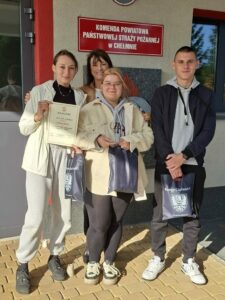 We wtorek, 21 października bieżącego roku trzyosobowa drużyna naszej szkoły wzięła udział w I Powiatowej Olimpiadzie Pierwszej Pomocy. Organizatorem zmagań było Starostwo Powiatowe w Chełmnie przy współpracy z Komendą Powiatową Straży pożarnej w Chełmnie oraz Zespołem Opieki Zdrowotnej w Chełmnie. Cele konkursu związane były z popularyzacją wiedzy i umiejętności