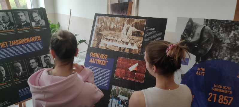 Przez 2 tygodnie w naszej szkole mogliśmy oglądać wystawę IPN pt. ”Zbrodnia katyńska 1940, zagłada polskich elit”. Wystawa jest częścią szerszego ”Projektu katyńskiego”, w ramach którego odbyło się koło historyczne poświęcone tej tematyce, uczniowie zobaczyli również w kinie film pt. ”Pojedynek”, który ogniskuje wokół tematu zbrodni na polskich oficerach, a także wzięli udział w wykładzie przeprowadzonym przez pracownika IPN a poświęconym archeologicznym aspektom katyńskiego mordu.