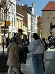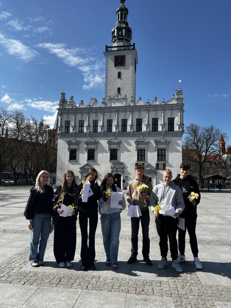 Jak co roku uczniowie Zespołu Szkół CKZ w Grubnie wzięli udział w Akcji żonkil upamiętniającej wybuch powstania w getcie warszawskim. Powstanie wybuchło 19 kwietnia 1943 r. i było wyrazem stanowczego sprzeciwu wobec dokonywanego przez Niemców Holokaustu. Dwie organizacje: Żydowska Organizacja Bojowa i Żydowski Związek Wojskowy podjęły w getcie nierówną walkę, która miała być wyborem drogi własnej śmierci. Śmierci z bronią w ręku w walce, a nie na kolanach. Kilkuset członków obu organizacji przez kilkanaście dni walczyło z Niemcami , którymi dowodził gen. SS Jurgen Stroop. Powstanie zakończyło się wysadzeniem przez hitlerowców synagogi przy placu Tłomackie 7. Tylko nieliczni żydowscy bojowcy przeżyli powstanie i wojnę. Uczniowie naszej szkoły przypominali mieszkańcom Chełmna o tej rocznicy wręczając ulotki i żonkile. Piotr Sołtysiak.