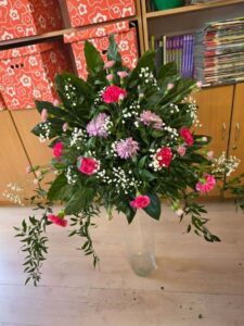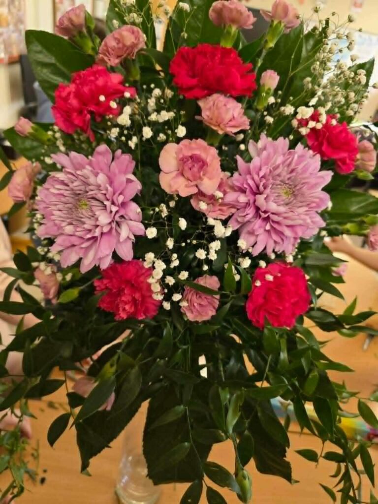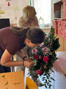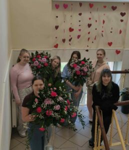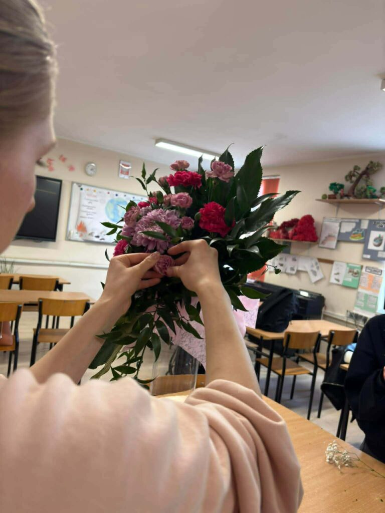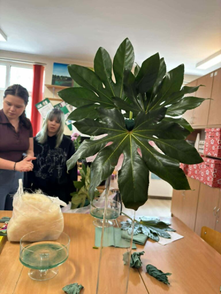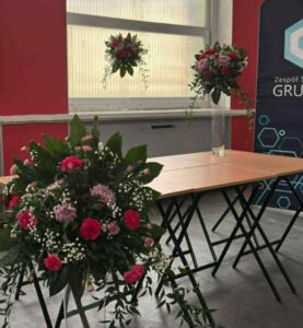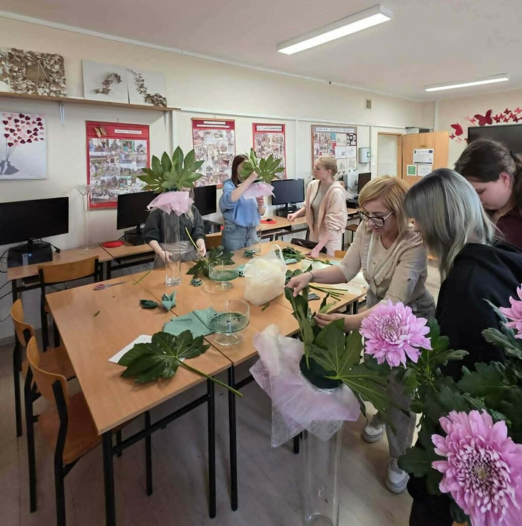 W ramach projektu unijnego „Zawodowo i profesjonalnie w szkołach z powiatu chełmińskiego” (FEKP.08.16-IZ.00-0004/24), współfinansowanego przez Unię Europejską, uczniowie Technikum Architektury Krajobrazu mają możliwość rozwijania swoich kompetencji zawodowych poprzez udział w dodatkowych zajęciach praktycznych, które łączą teorię z twórczym działaniem. W kwietniu odbyły się wyjątkowe zajęcia bukieciarsko-florystyczne, podczas których młodzież poznawała zasady komponowania dekoracji roślinnych oraz doskonaliła techniki pracy z żywym materiałem florystycznym. Uczniowie wykonywali kompozycje z wykorzystaniem takich roślin jak aralia, ruscus, goździki, chryzantemy oraz delikatna gipsówka. Starannie dobrana kolorystyka – odcienie malinowe, różowe i wrzosowe, przełamane subtelną bielą – nadała aranżacjom elegancki, a zarazem świeży charakter. Efektem pracy uczestników były efektowne kompozycje florystyczne wykonane w dekoracyjnych tubach, które stały się ozdobą akademii z okazji zakończenia szkoły przez klasy maturalne. Przygotowane dekoracje doskonale wpisały się w oprawę uroczystości, harmonijnie współgrając z malinowo-różową stylistyką pozostałych elementów wystroju. Całość stworzyła spójną, estetyczną i pełną wdzięku aranżację, która przyciągała uwagę i podkreślała wyjątkowy charakter wydarzenia. Była to nie tylko piękna dekoracja, ale również najlepszy dowód na to, że praktyczne zajęcia zawodowe rozwijają kreatywność, uczą precyzji oraz pozwalają uczniom zdobywać cenne doświadczenie w realnych działaniach florystycznych. Takie inicjatywy pokazują, że nauka zawodu może być inspirująca, twórcza i przynosić widoczne efekty.